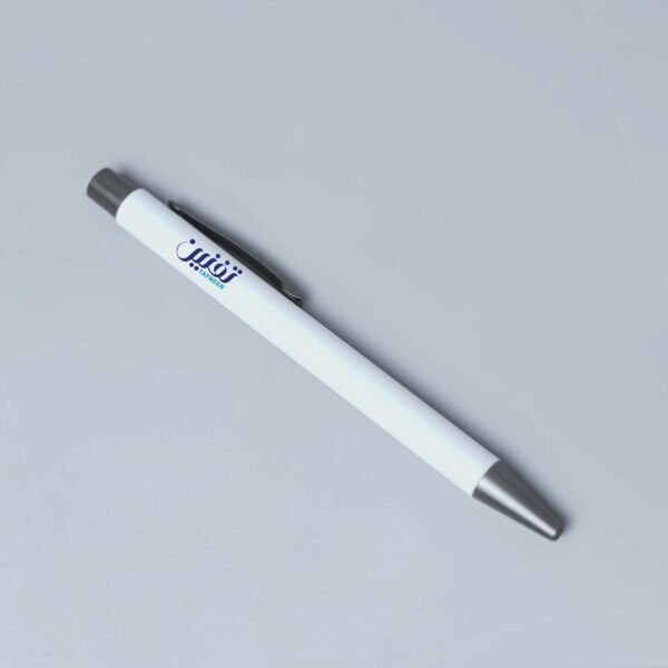 قلم ستيل لون أبيض مع طباعة شعارك او اسم شركتك طباعة واضحة ومميزة