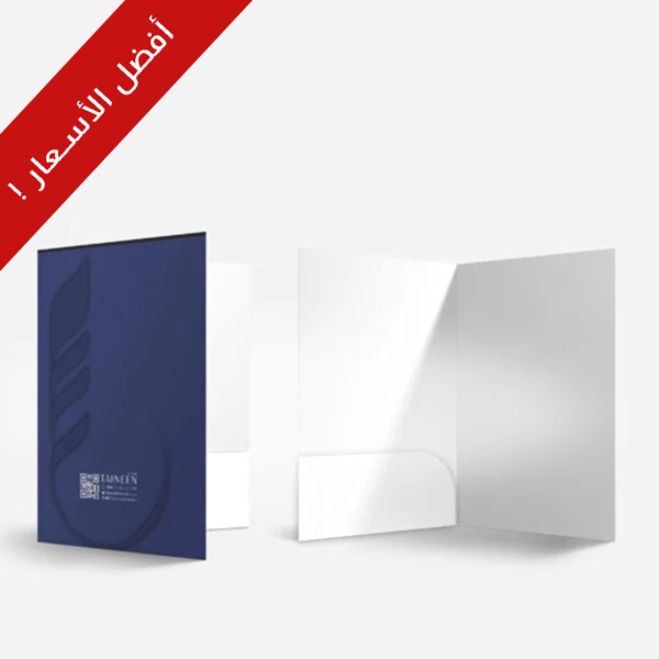 • فولدر مع جيب أبيض (منفصل) طباعة رقمية ملونة من الخارج حسب التصميم المرسل من العميل